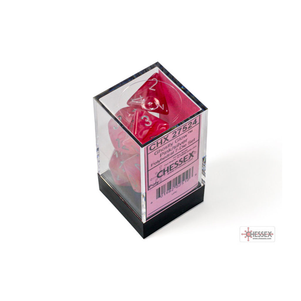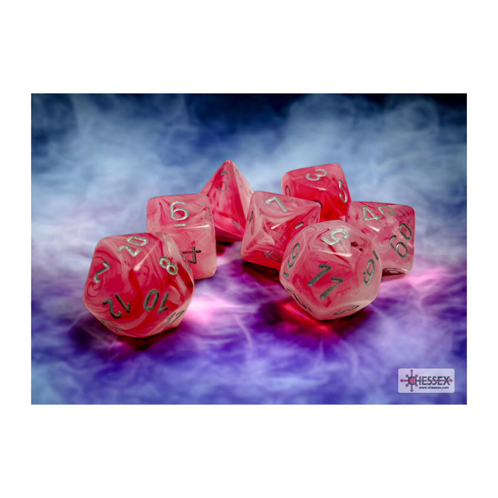 Set de 7 dés – Ghostly Glow – Rose/Argent