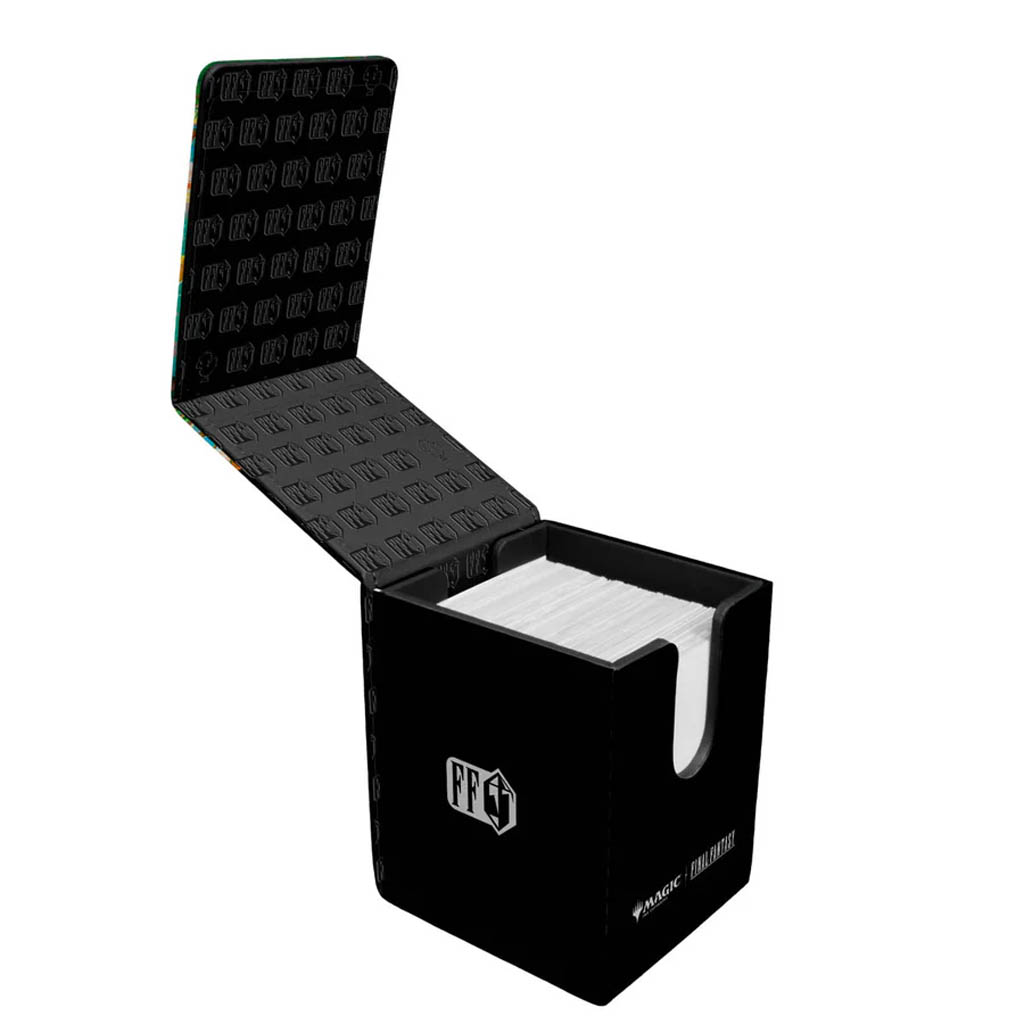 La boîte à cartes Alcove® Flip Deck Box® pour MAGIC: THE GATHERING®—FINAL FANTASY™ arbore une finition en similicuir aux couleurs éclatantes, une fermeture magnétique robuste et deux encoches pour un accès facile à votre deck. Cette boîte peut contenir jusqu’à 100 cartes à collectionner de taille standard, protégées par des pochettes Ultra PRO Deck Protector®.
