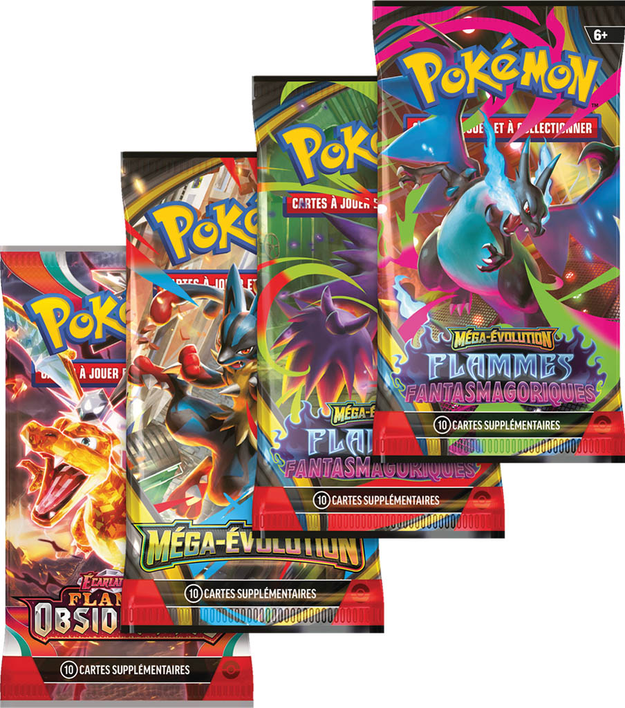Si toutes les conditions sont réunies et qu’un lien puissant l’unit à son Dresseur ou sa Dresseuse, Dracaufeu peut dépasser ses propres limites et méga-évoluer ! Avec cette boîte, vous pouvez choisir les flammes bleues déchaînées de Méga-Dracaufeu X-ex ou l’agilité aérienne de Méga-Dracaufeu Y-ex, puis trouver d’autres Pokémon dans les boosters inclus.