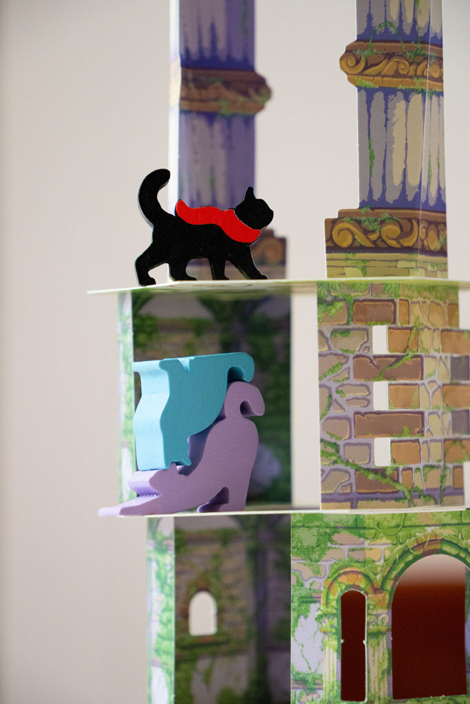 En coopération, construisez la tour à l’aide de tuiles Mur et Étage, et accomplissez des missions pour aider Neko, le chat noir, à atteindre le sommet de la tour.