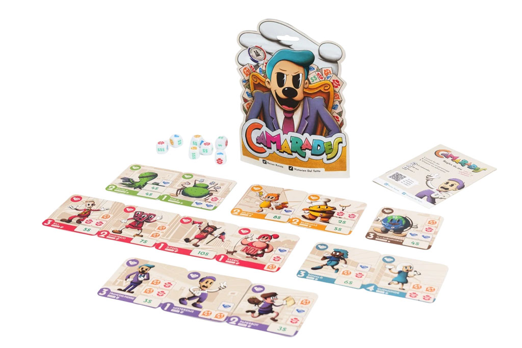 Par rapport aux autres jeux de dés, “Camarades” se distingue par son aspect vachard et jouissif. Il combine l’intensité du Risk avec une dimension euphorisante du Yam’s ou de Pickomino. Ce jeu est parfait pour celles et ceux à la recherche d’un jeu plein de coups d’éclat à jouer entre amis à l’apéro ou en famille, entre enfants ou entre adultes, que vous soyez aussi bien 2 que 5 camarades de jeux autour de la table (basse).