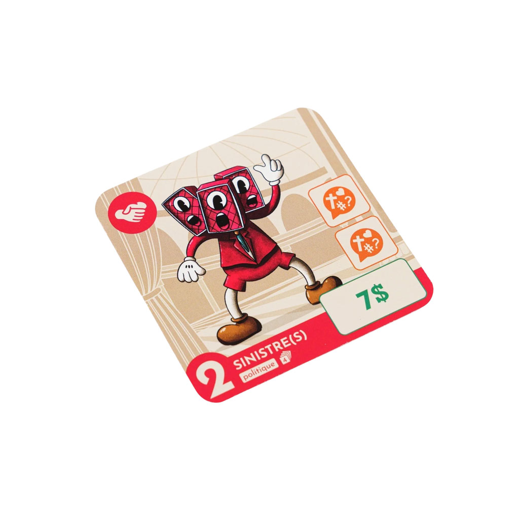 Prenez des risques, tentez votre chance et n’hésitez pas à corrompre les personnages déjà capturés par vos adversaires avant qu’il ne soit trop tard. Marquez le maximum de points et sécurisez-les en remportant tous les personnages d’une même famille.