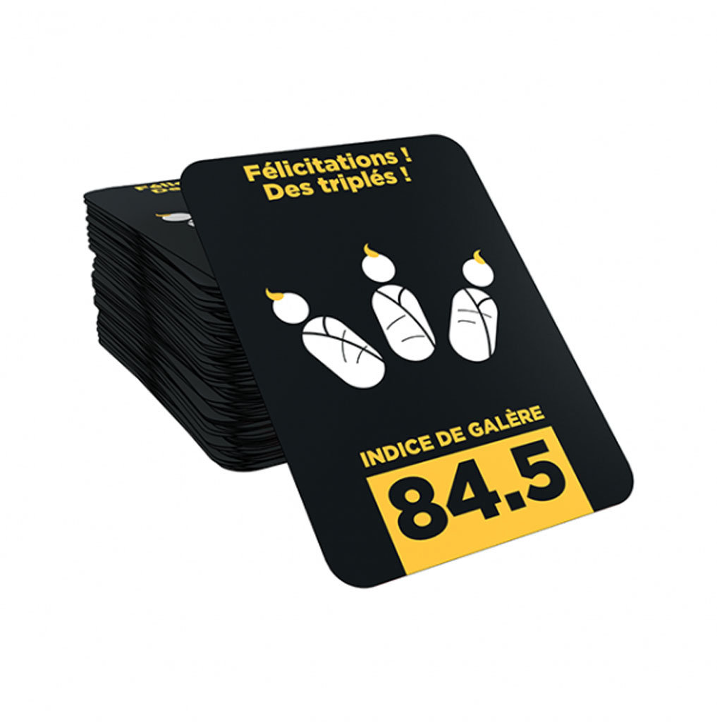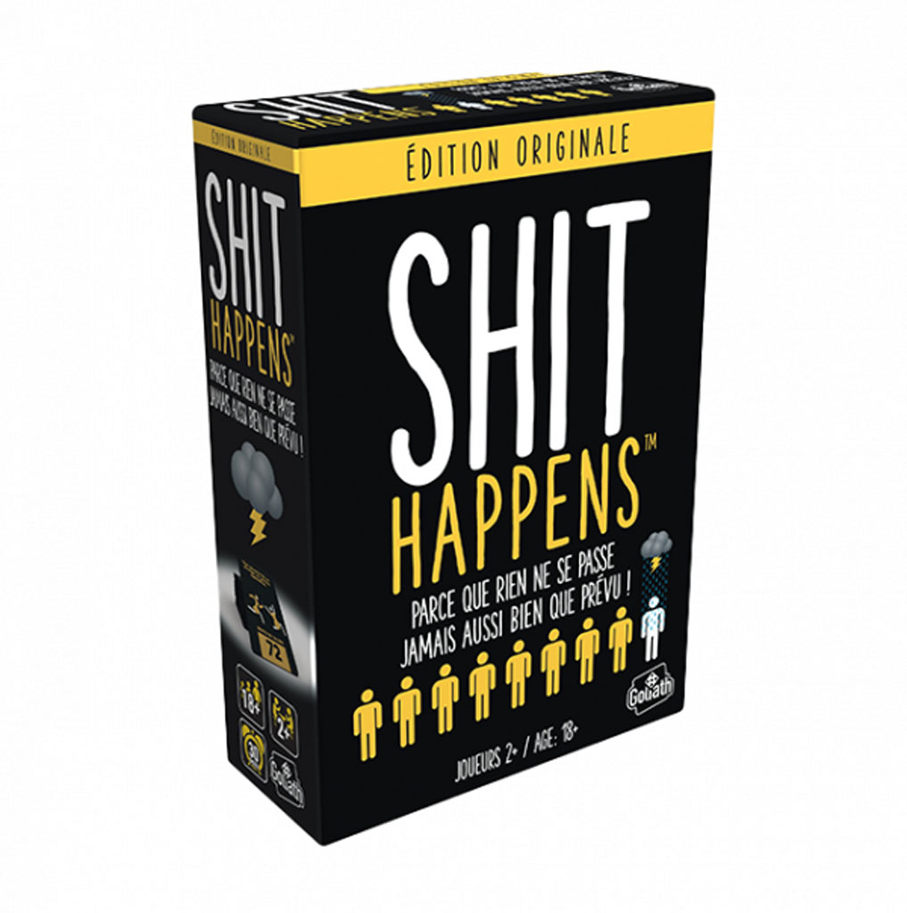 Shit Happens est un jeu d’ambiance extrêmement fun, à la limite de l’impertinence dans lequel on va rencontrer les situations les plus improbables. Il faudra les classer correctement sur l’échelle du Shit’O’Mètre graduée de 1 à 100. Qu’est-ce qui est pire ? “Voir son père nu ” ou ” mouiller ses draps tous les soirs ” ? Le premier joueur qui collecte 10 cartes galère remporte la partie !