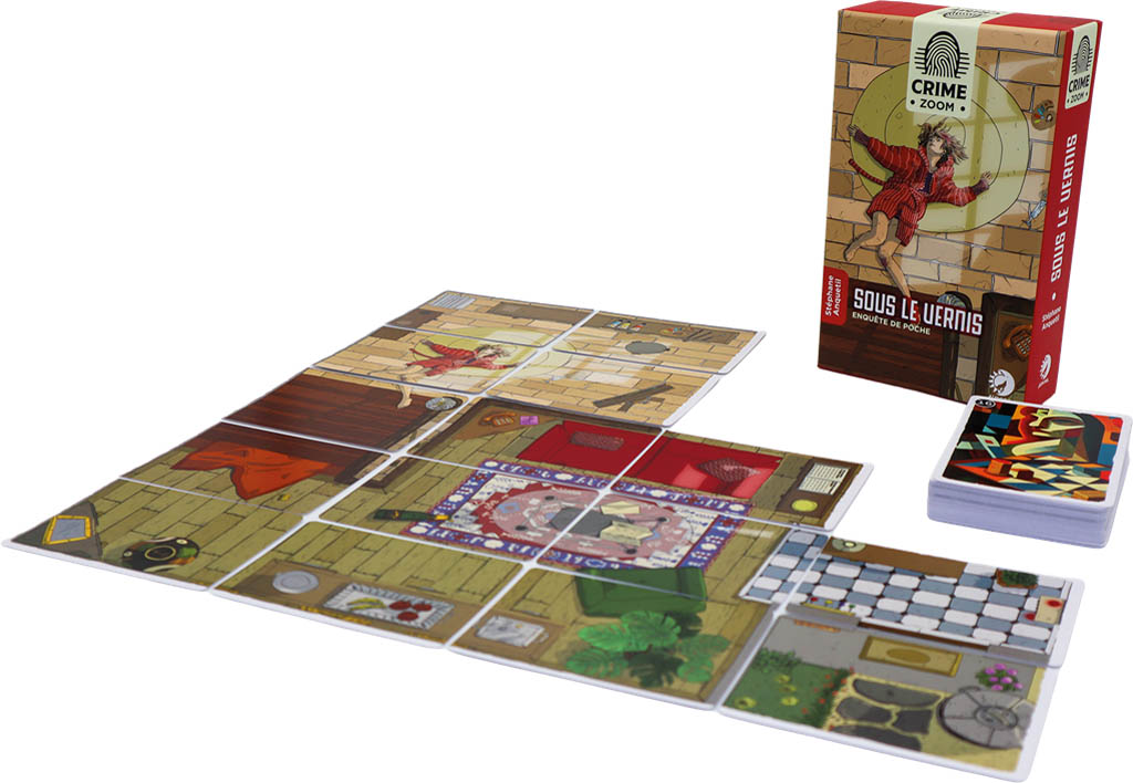Plongez dans cette enquête narrative, une aventure à vivre seul ou en équipe. Explorez une scène de crime – pour la première fois en vue plongeante – où chaque détail compte. Parcourez les lieux à la recherche de précieux indices. Interrogez les suspects, rassemblez les preuves. Pour enquêter, il suffit d’analyser les cartes magnifiquement illustrées par Florian Belmonte avec un style de bande dessinée. Puis choisissez entre les différentes pistes proposées pour progresser dans l’histoire. Dans « Sous le vernis », explorez les coulisses du monde de l’art. Vous enquêterez sur le meurtre d’Eleanor Cubismo, veuve d’un peintre célèbre, retrouvée morte dans l’atelier du maître dans le Sud de la France. A vous de dessiner les contours de ce drame en élucidant le mystère !