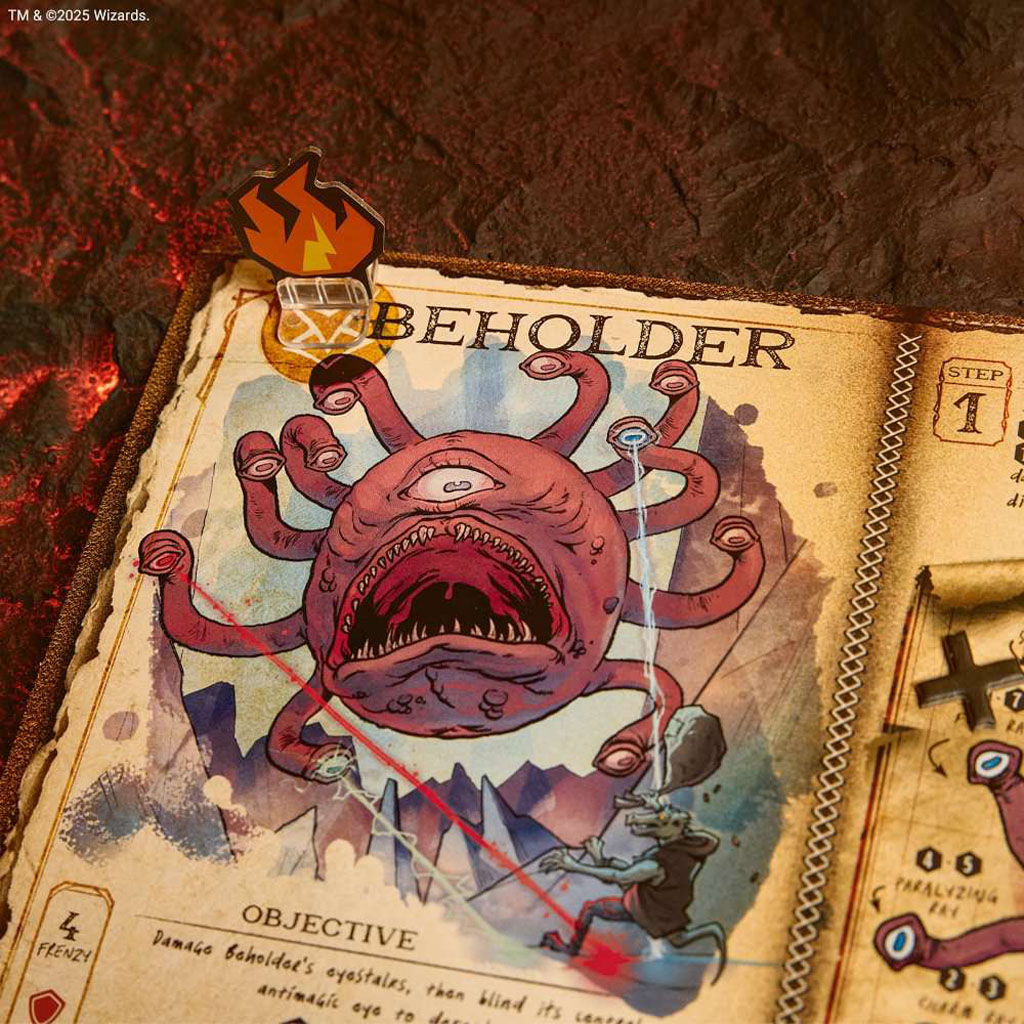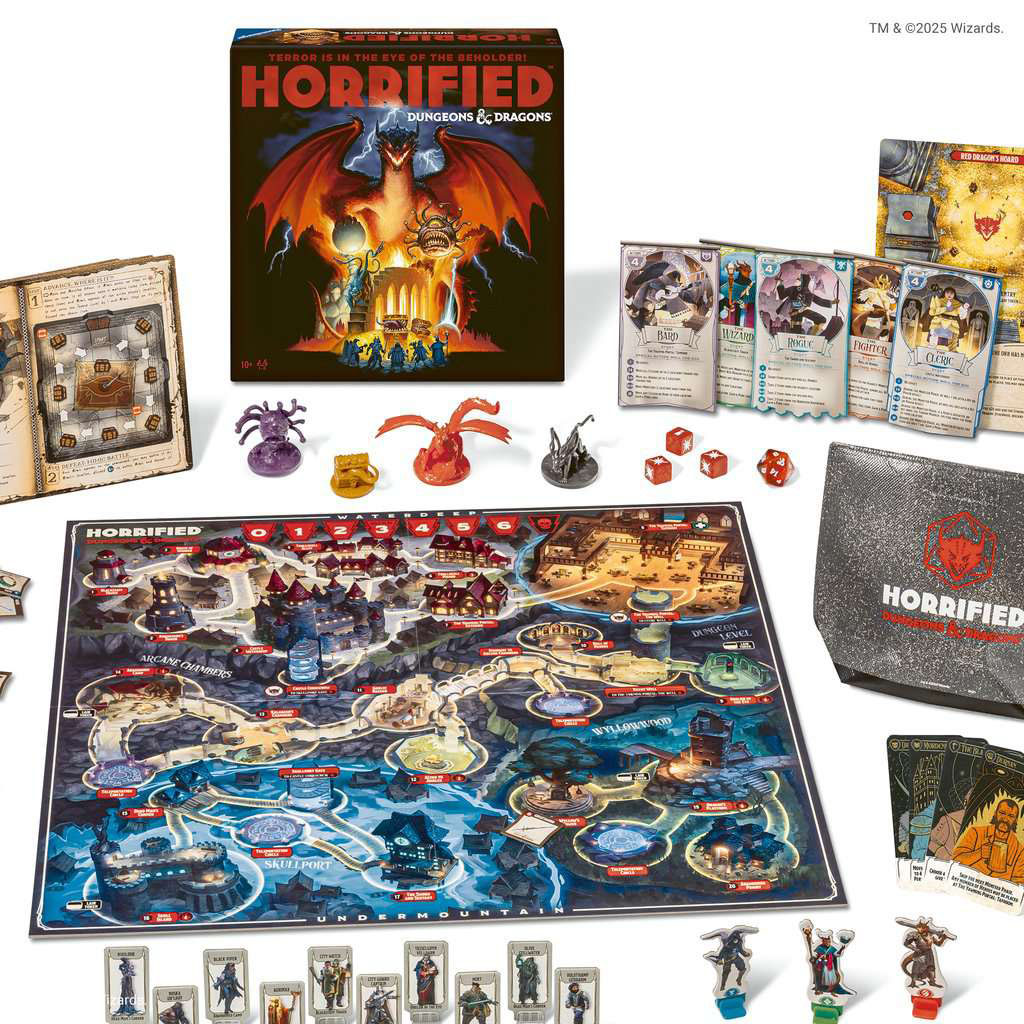 Dans Horrified : Dungeons & Dragons, vous incarnez des Héros et les citoyens ont fait appel à vous pour vaincre les monstres et protéger la ville d’Eauprofonde. Vous allez devoir coopérer pour neutraliser le Tyrannoeil, la Mimique, la Bête éclipsante ou encore le redoutable Dragon Rouge ! Chaque monstre a ses propres faiblesses et sa propre manière d’être vaincu ! Choisissez les monstres que vous voulez affronter pour ajuster la difficulté du jeu.Parcourez la ville d’Eauprofonde pour récupérer des objets et les utiliser pour vaincre les monstres sans vous faire attraper et tuer, sauvez également le plus de citoyens possible. Obtenez des faveurs et subissez le hasard des dés. Parviendrez-vous à sauver les citoyens et à sauver la ville avant que la terreur ne vous envahisse ? Pour ce faire, coopérez bien et réfléchissez ensemble à la meilleure manière de vaincre ces monstres mythiques ! Horrified : Dungeons & Dragons est un jeu jouable de 1 à 5 joueurs dès 10 ans pour des parties de 45 à 60 minutes.