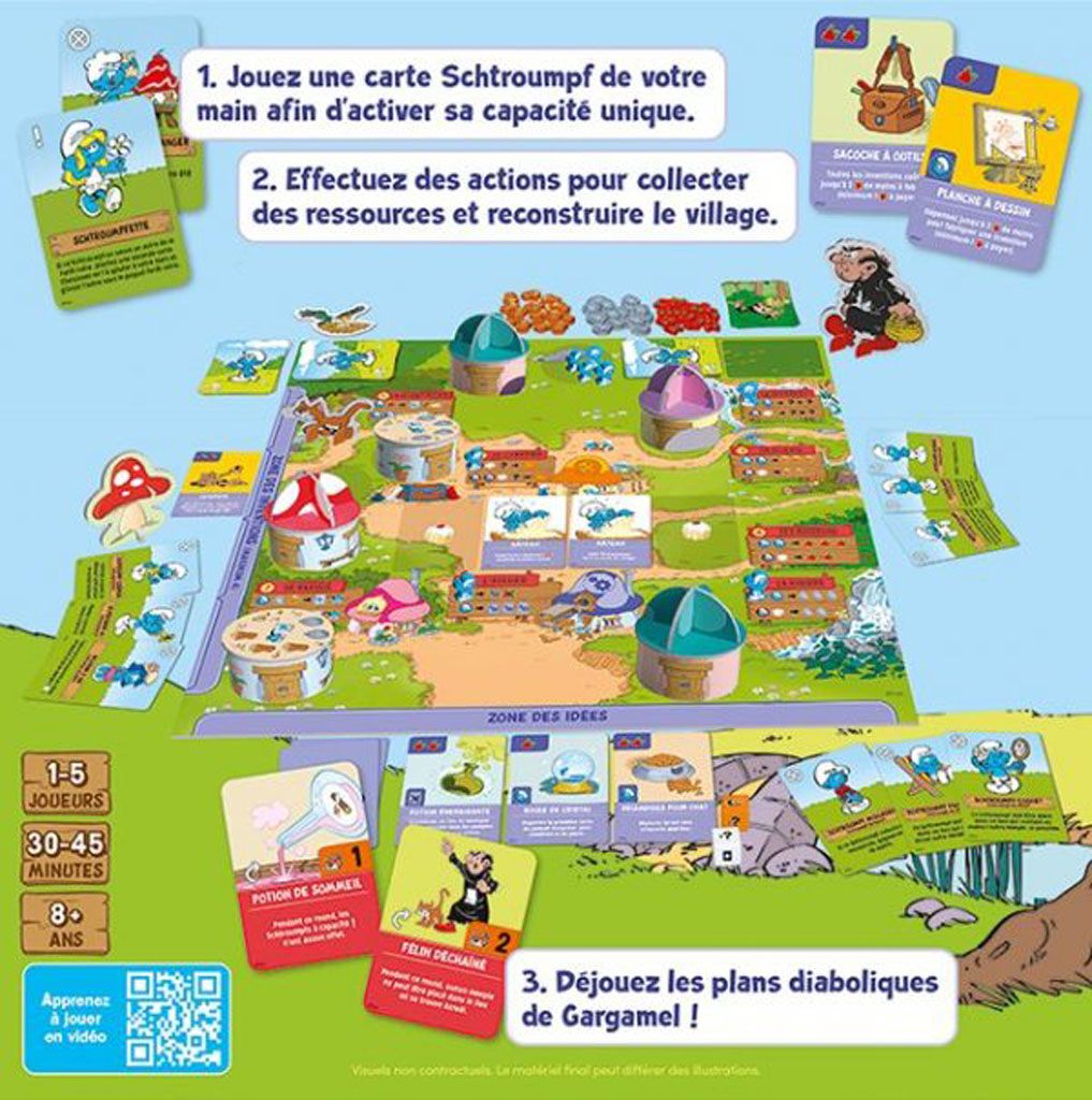 Les “+” produit : Un jeu coopératif d’initiation au deckbuilding ; Chaque Schtroumpf est unique ; La thématique et les mécaniques se marient très bien !
