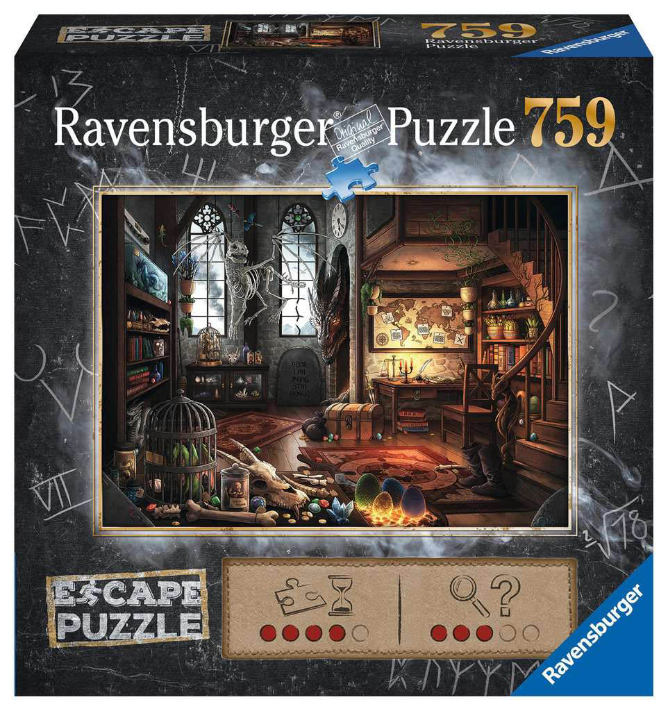 1 puzzle de 759 pièces, 1 guide de jeu, 1 enveloppe contenant la solution de l’énigme