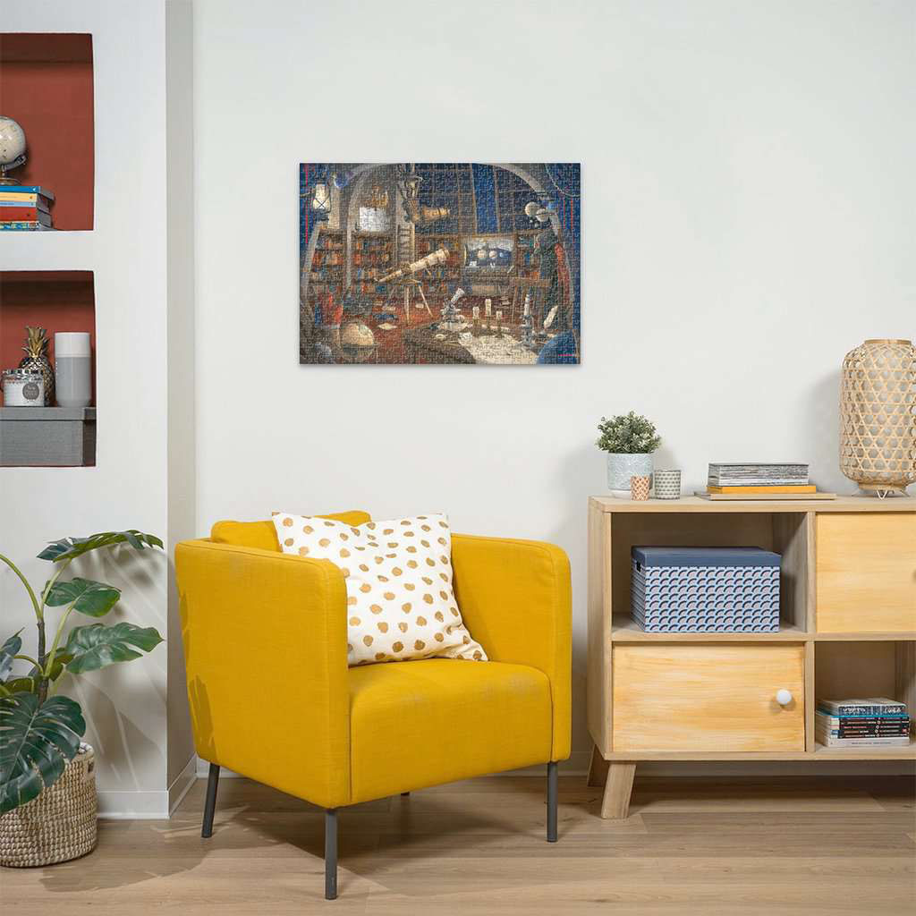 Découvrez la première offre de puzzles inspirée des jeux d’évasion ! Plongez au coeur de cette illustration inédite et de son histoire originale, et résolvez tous les mystères qui l’entourent. Commencez par assembler les 759 pièces de ce puzzle, puis résolvez les différentes énigmes cachées au coeur de l’illustration. Au fur et à mesure, vous récolterez des pièces qui vous permettront de reconstituer la solution finale, comme clef de sortie de ce grand jeu d’évasion.
