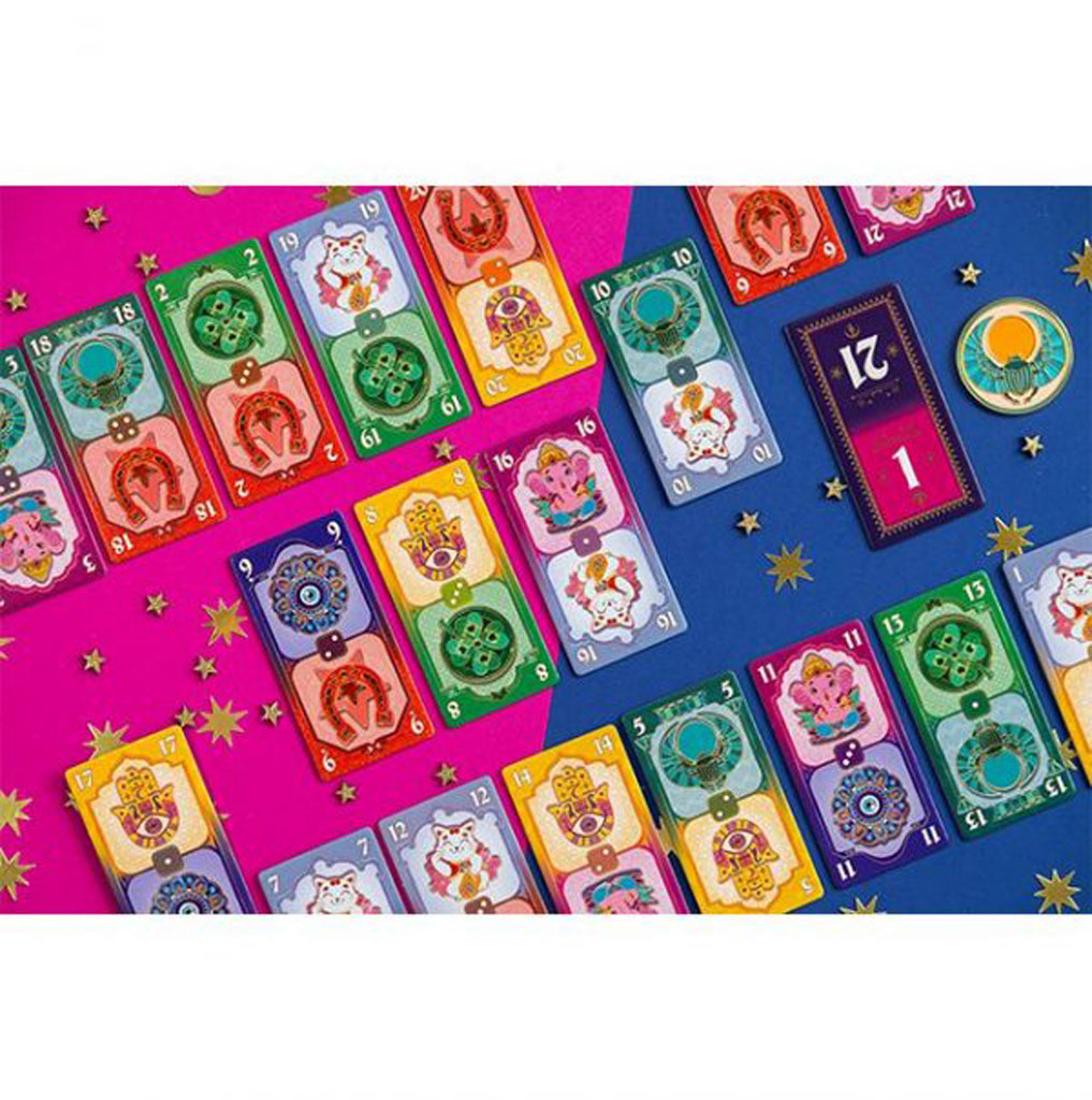 Dans ce duel tout en finesse, anticipez les coups de votre adversaire, connectez les bons symboles et collectionnez les porte-bonheurs pour multiplier vos chances de gagner !
