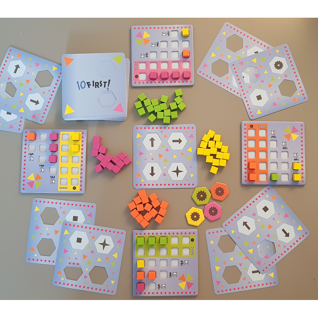10 FIRST! est un jeu de prise de risque, mais tout en maîtrise car, à tout moment, vous connaissez le score de vos adversaires et pouvez ajuster votre stratégie et peut-être mettre fin à la manche en cours… ou tout perdre !