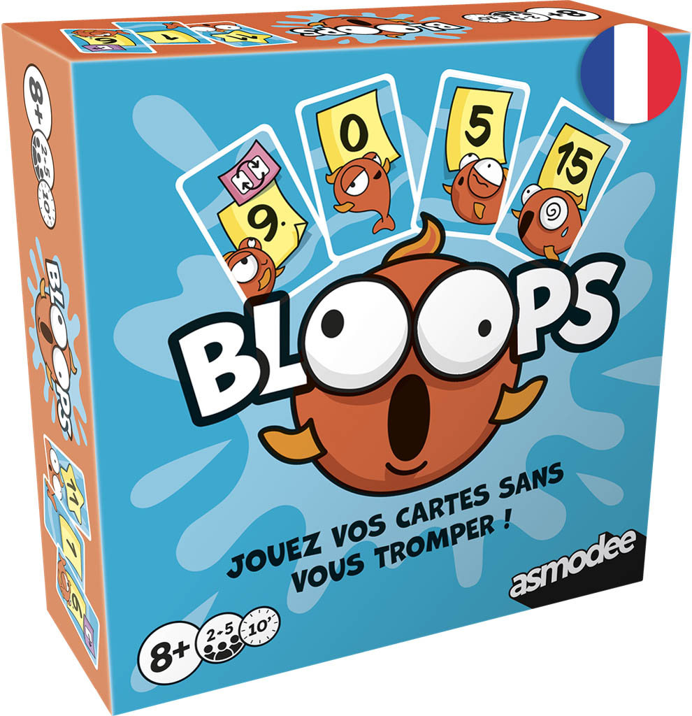 Lorsque la carte 20 est jouée ou qu’un joueur crie « ◊Bloops !◊» , la partie est terminée et les scores sont révélés. Sauf si vous avez 3 cartes « ◊étoile◊» ou plus : elles ne comptent pas ! Mémorisation, bluff et timing feront de vous le poisson roi du bocal. Petit et compact, Bloops va vous suivre partout pour des parties en famille ou entre amis.