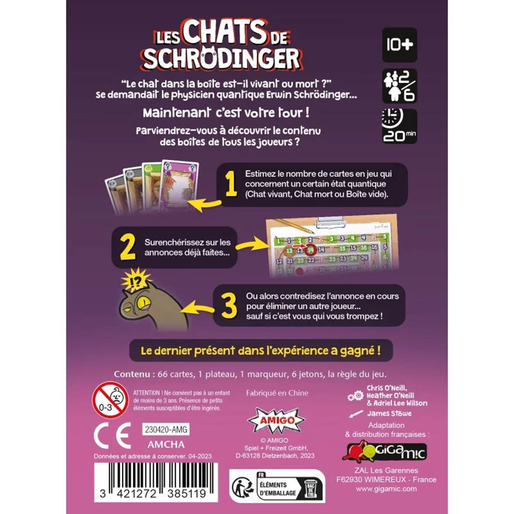 Estimez le nombre de cartes en jeu qui concernent un certain état quantique (Chat vivant, Chat mort ou Boîte vide).