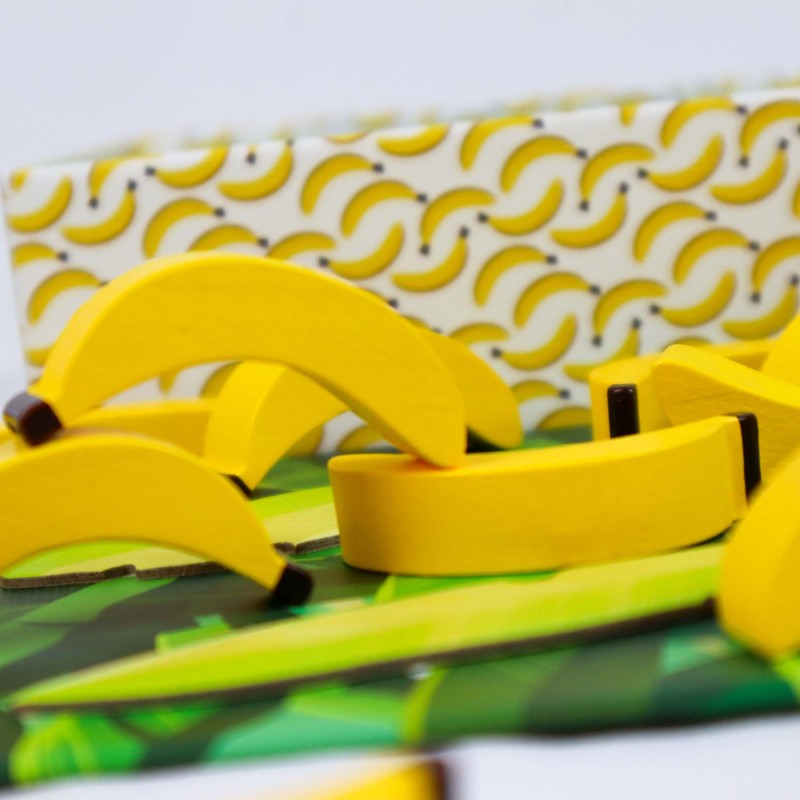 Tasso Banana est jouable de 2 à 6, et chaque participants commence avec un certain nombre de bananes en bois.