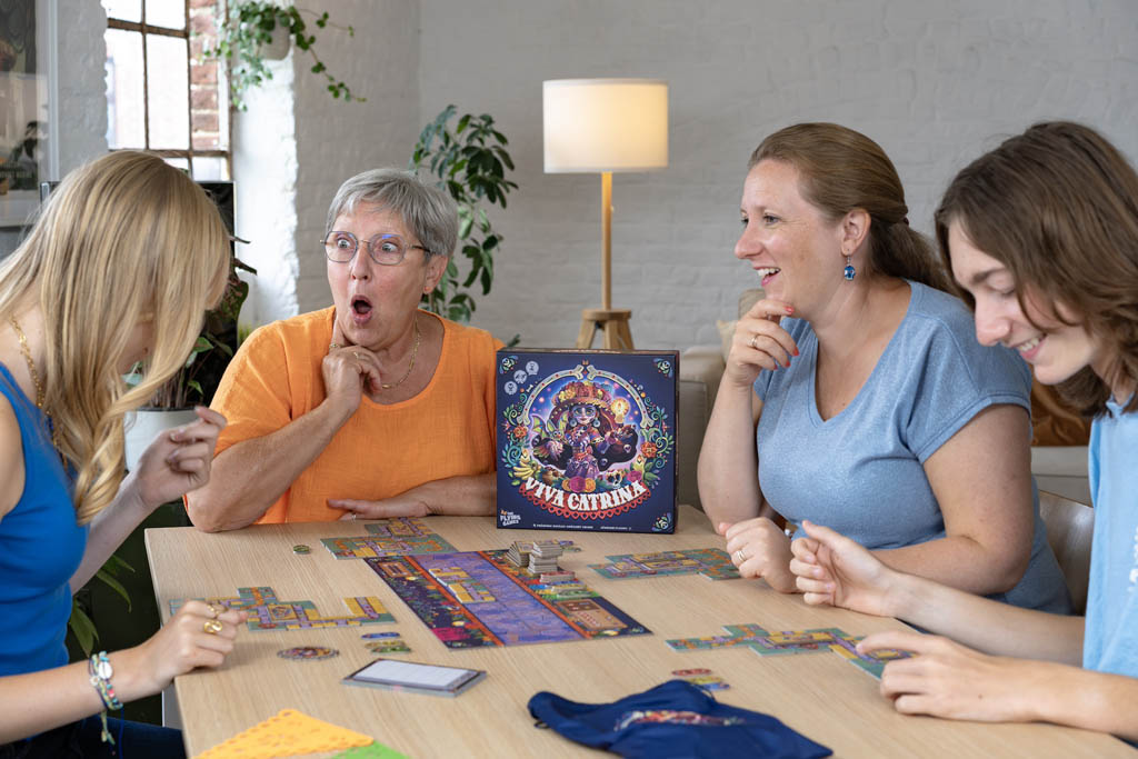 Viva Catrina propose une expérience de placement stratégique où chaque tuile posée façonne l’évolution de votre Village. À chaque tour, vous devez choisir avec soin parmi les tuiles disponibles, créer des chemins pour relier papillons et visiteurs, ériger des socles pour attirer des chimères, et organiser des envolées de ballons pour maximiser vos points. La construction optimisée d’un réseau connecté est essentielle : une mauvaise pose pourrait couper vos chemins ou rendre vos objectifs inatteignables. L’interaction indirecte, via la course aux chimères ou aux tuiles ballons, ajoute une tension légère mais constante. Le rythme est fluide et la satisfaction vient de voir son Village grandir et s’animer tout au long de la partie.