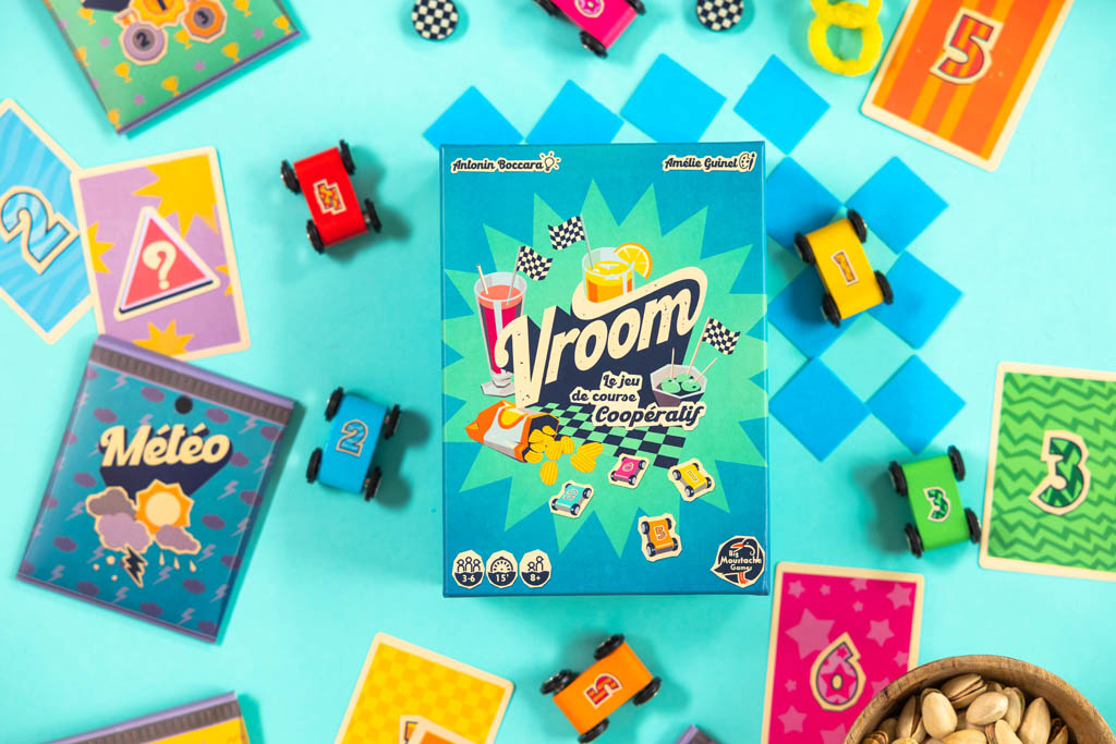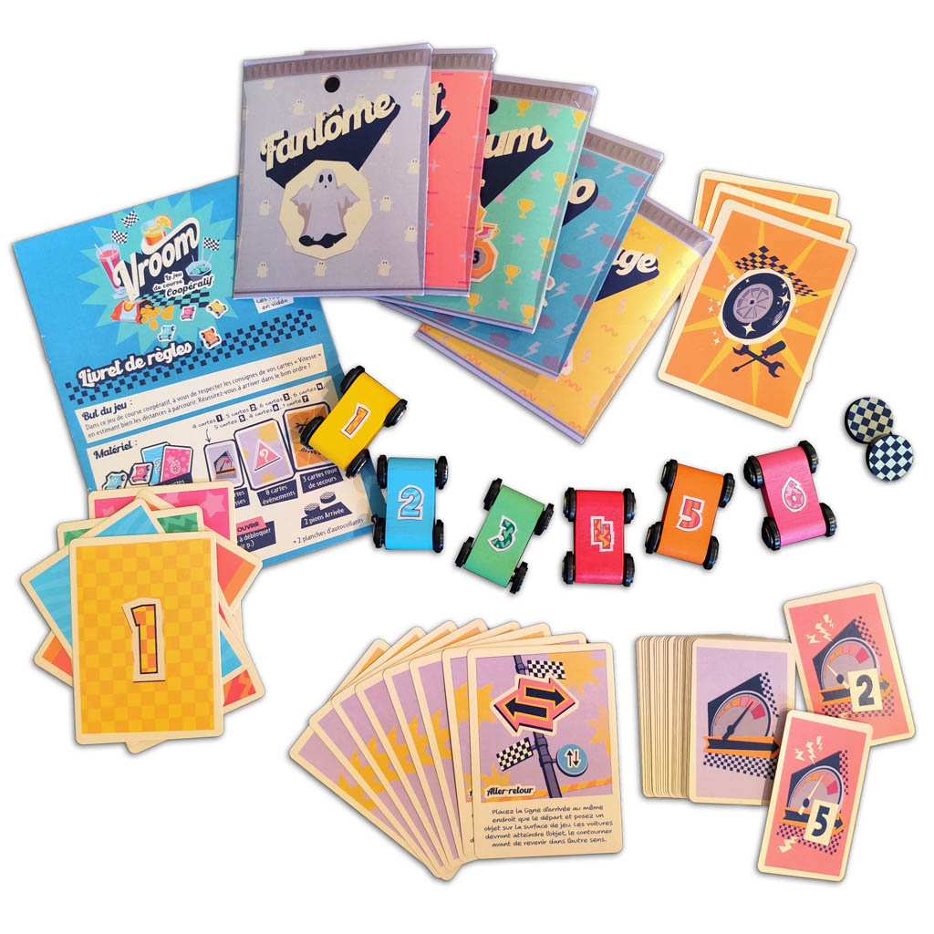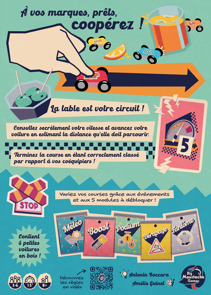 Dans ce jeu de course coopératif, vous devez arriver dans le bon ordre ! À chaque tour, les joueurs doivent avancer en fonction d’une carte Vitesse que les autres ne voient pas. À vous d’estimer jusqu’où pousser votre petite voiture…