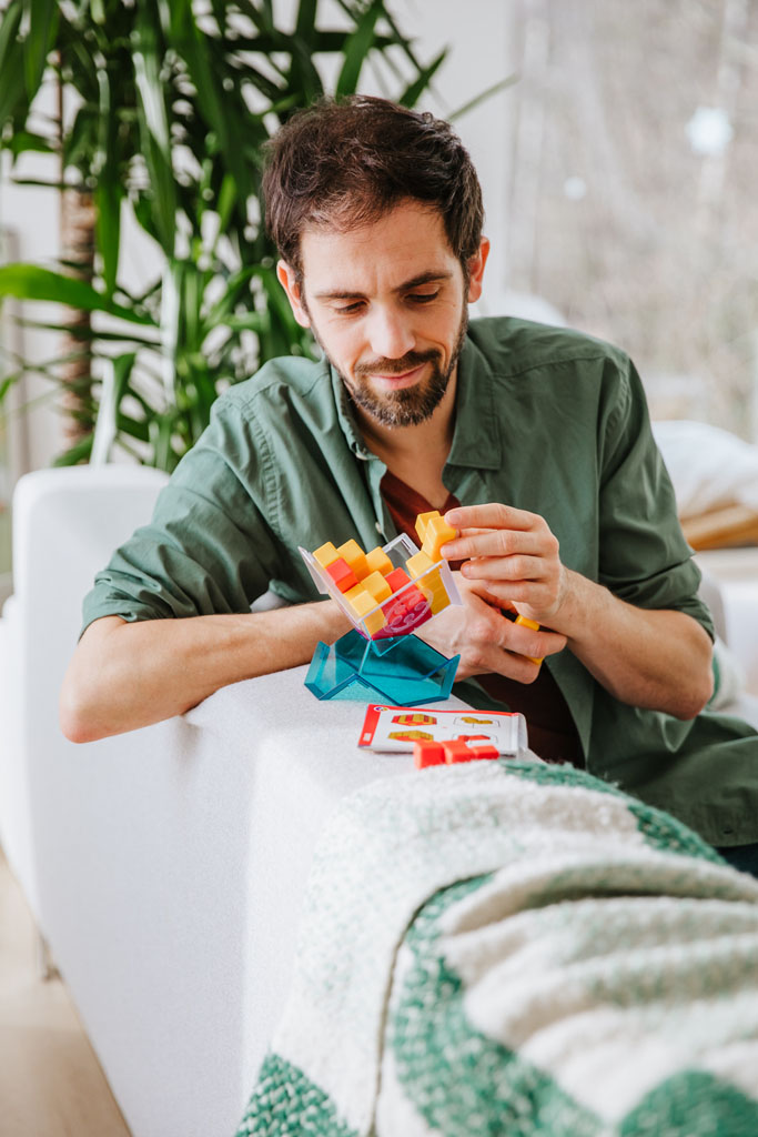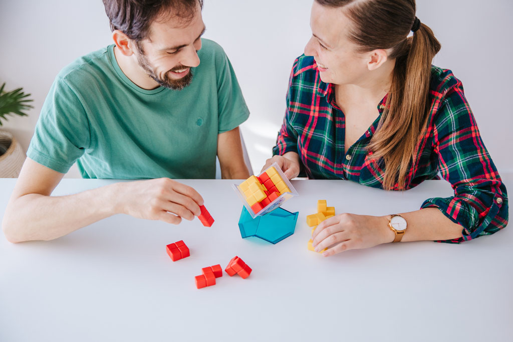 Placez judicieusement les pièces jaunes ou rouges afin que les pièces de votre couleur apparaissent en plus grand nombre sur le dessus des trois faces visibles du cube. Jouez également en solitaire à l’aide des 80 défis inclus.