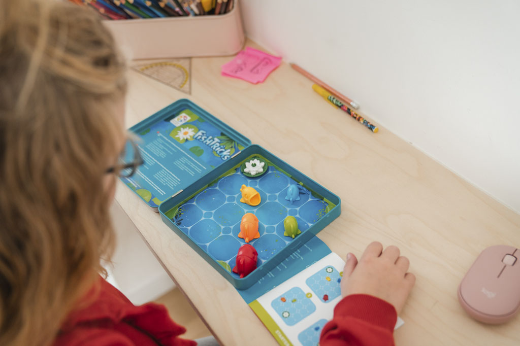 Plongez dans « Mange-Moi Si Tu Peux! » , un jeu qui déborde d’imagination avec ses nombreux défis ! Faites preuve de stratégie pour placer vos poissons colorés du plus gros au plus petit, tout en nageant autour du nénuphar. Faites en sorte que chaque poisson se dirige vers un congénère plus petit que lui pour le chasser. Choisissez votre défi, alignez vos poissons et résolvez l’énigme aquatique !