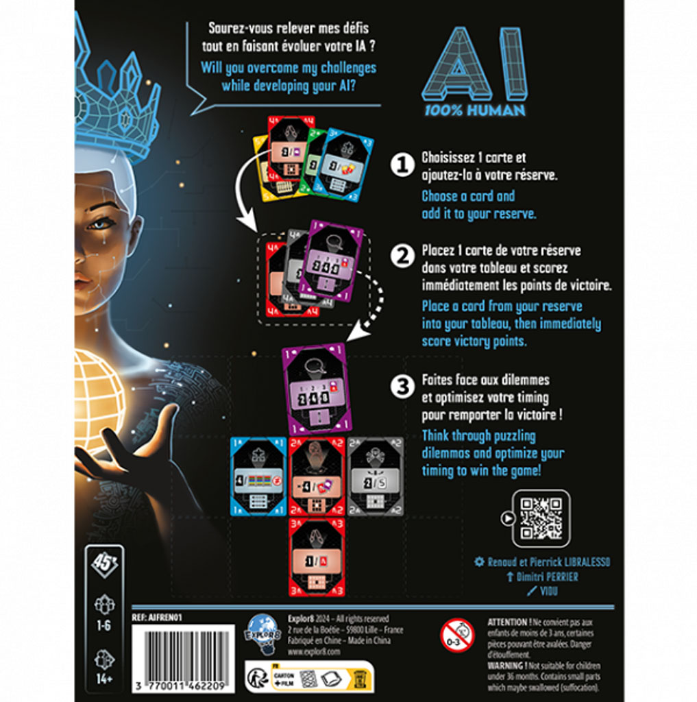 Dans AI : 100% Humain, vous devez choisir et développer votre Intelligence Artificielle (IA) ! Intégrez les nouveaux développements de tout type (calcul, hacking, jeu… ) et atteignez les objectifs fixés par l’IA Originale pour obtenir l’IA la plus puissante.