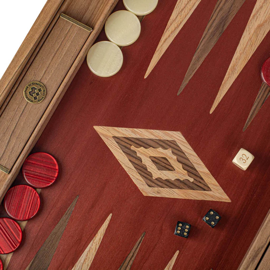 Découvrez l’élégance raffinée de notre jeu de backgammon en noyer et chêne rouge fait main, issu de la Premium Collection de Manopoulos. Cet ensemble d’exception allie la chaleur du noyer et du chêne rouge à la sophistication des flèches en chêne, créant une pièce intemporelle pour votre collection de jeux.