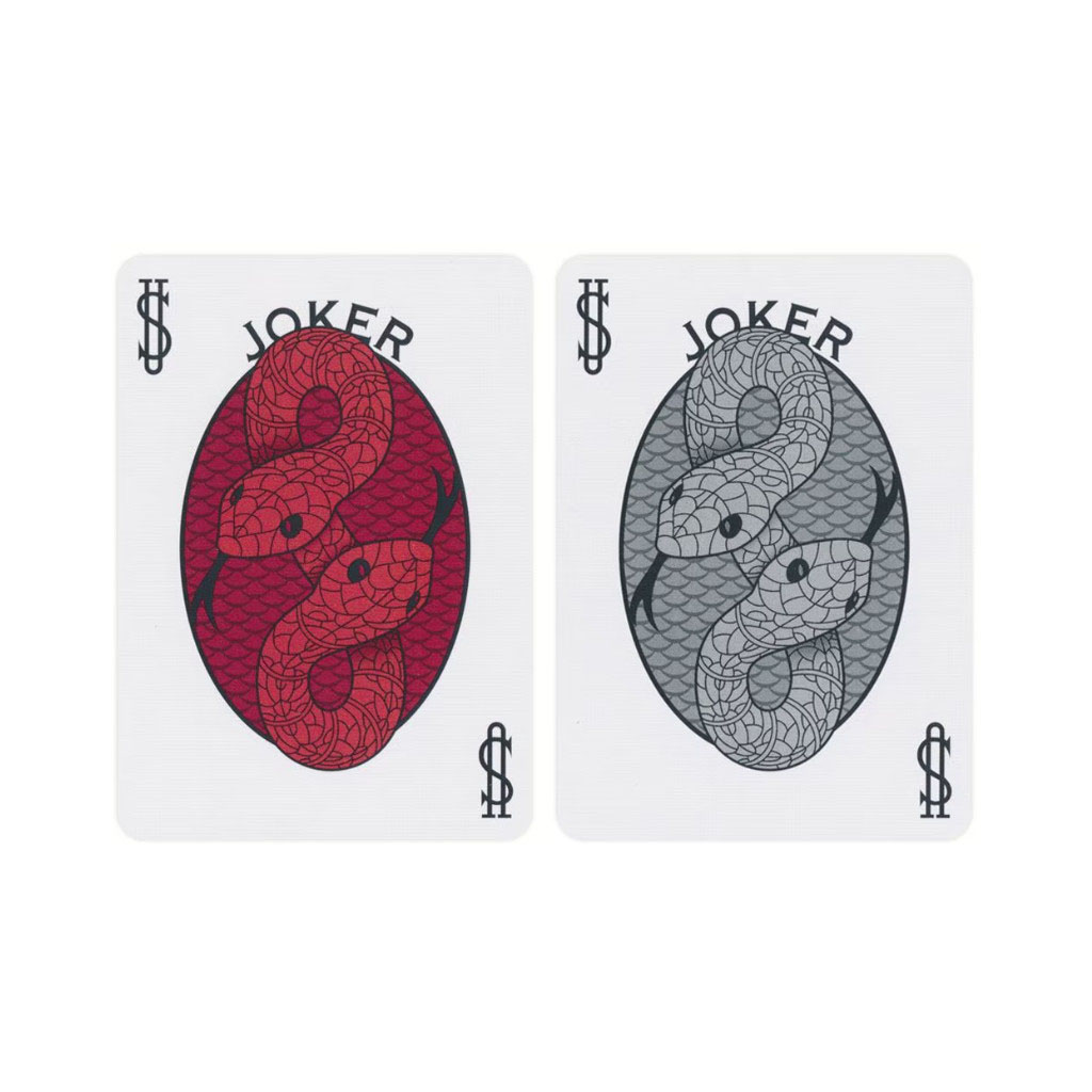 Manifestez la sagesse et l’intelligence de l’année du serpent avec les cartes à jouer Serpent de Bicycle ! Les cartes de cour personnalisées, habillées d’un vêtement inspiré du kimono, apporteront une touche unique à votre prochaine partie ; et le serpent en feuille d’or brillant sur l’étui est prêt à frapper. Célébrez le zodiaque chinois avec l’année du serpent pour la première fois depuis 2013.