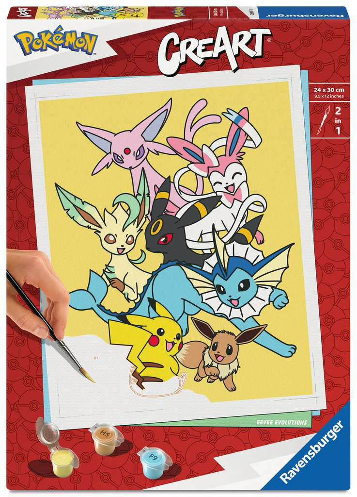 CreArt, de la peinture par numéros pour adulte – 24×30 cm. Profitez d’un moment de détente et de relaxation avec la peinture par numéros ! C’est facile, beau et agréable de réaliser soi-même son chef d’œuvre ! Parmi les nombreux visuels grands formats adulte à peindre et à accrocher, ce visuel unique et coloré de Pikachu, Evoli et ses évolutions saura ravir les passionnés et compléter leurs collections ! Fabriqué en Allemagne. A partir de 12 ans. Ce produit est composé de matériaux issus de forêts bien gérées certifiées FSC®, de matériaux recyclés et de matériaux issus d’autres sources contrôlées (FSC-C111262).