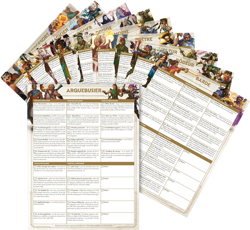 le Livret des voies, qui regroupe une version synthétique de toutes les capacités des voies de peuple, de profil et de prestige figurant dans le Livre de règles de Chroniques Oubliées Fantasy;