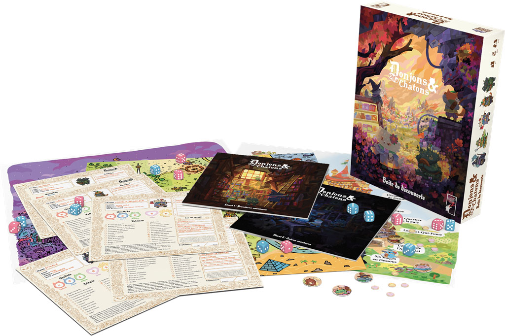 La Boite Découverte vous permettra d’incarner des héros chatons partant à l’aventure. Elle vous guidera pas à pas dans les règles de jeu et l’univers.