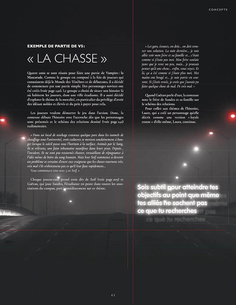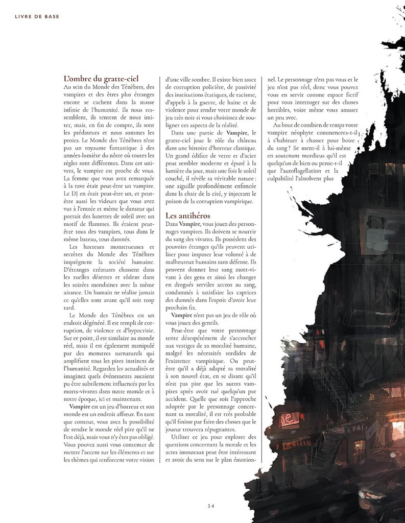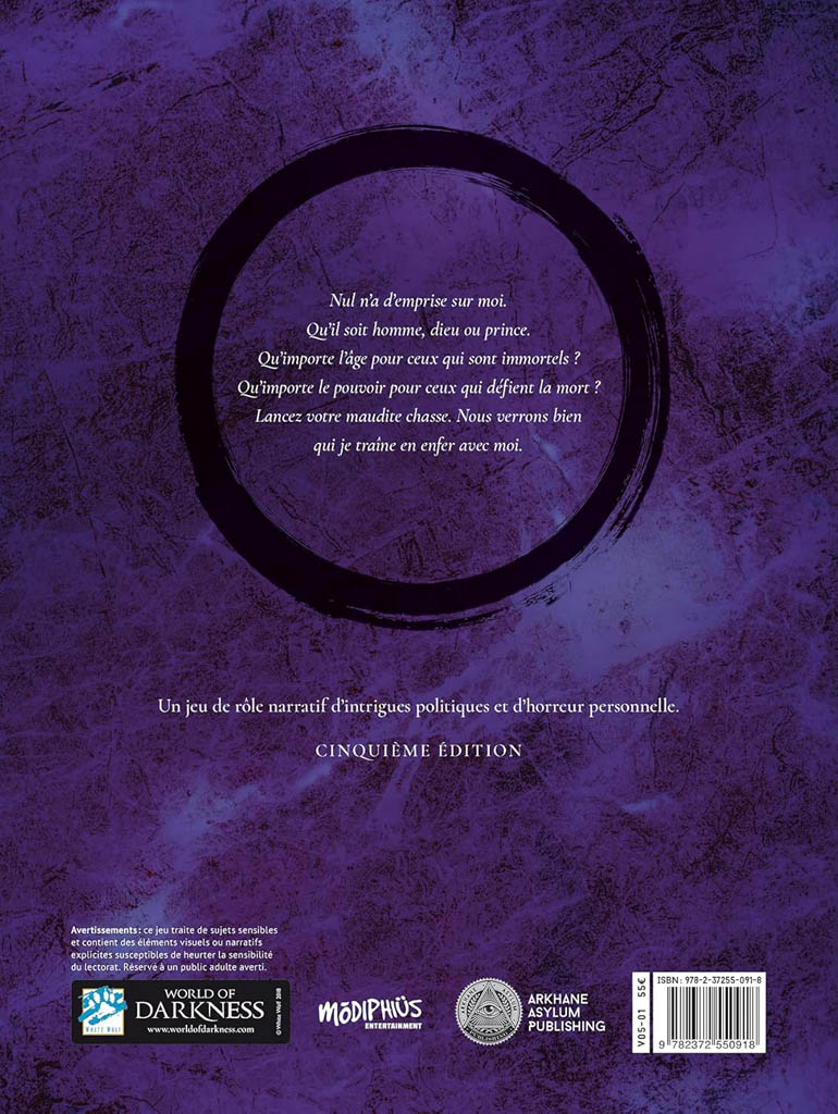 Vampire: la Mascarade est LE jeu d’horreur personnel et politique. Vous êtes un vampire, luttant pour votre survie, la suprématie et pour conserver votre humanité en déliquescence, effrayé de ce dont vous êtes capable et par les horribles conspirations inhumaines qui vous entourent.