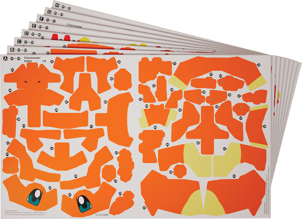 Avec ses 241 pièces à encastrer sans colle ni outils, cette maquette cartonnée vous permet de construire Salamèche, le Pokemon de type Feu de Kanto, debout dans les flamme.